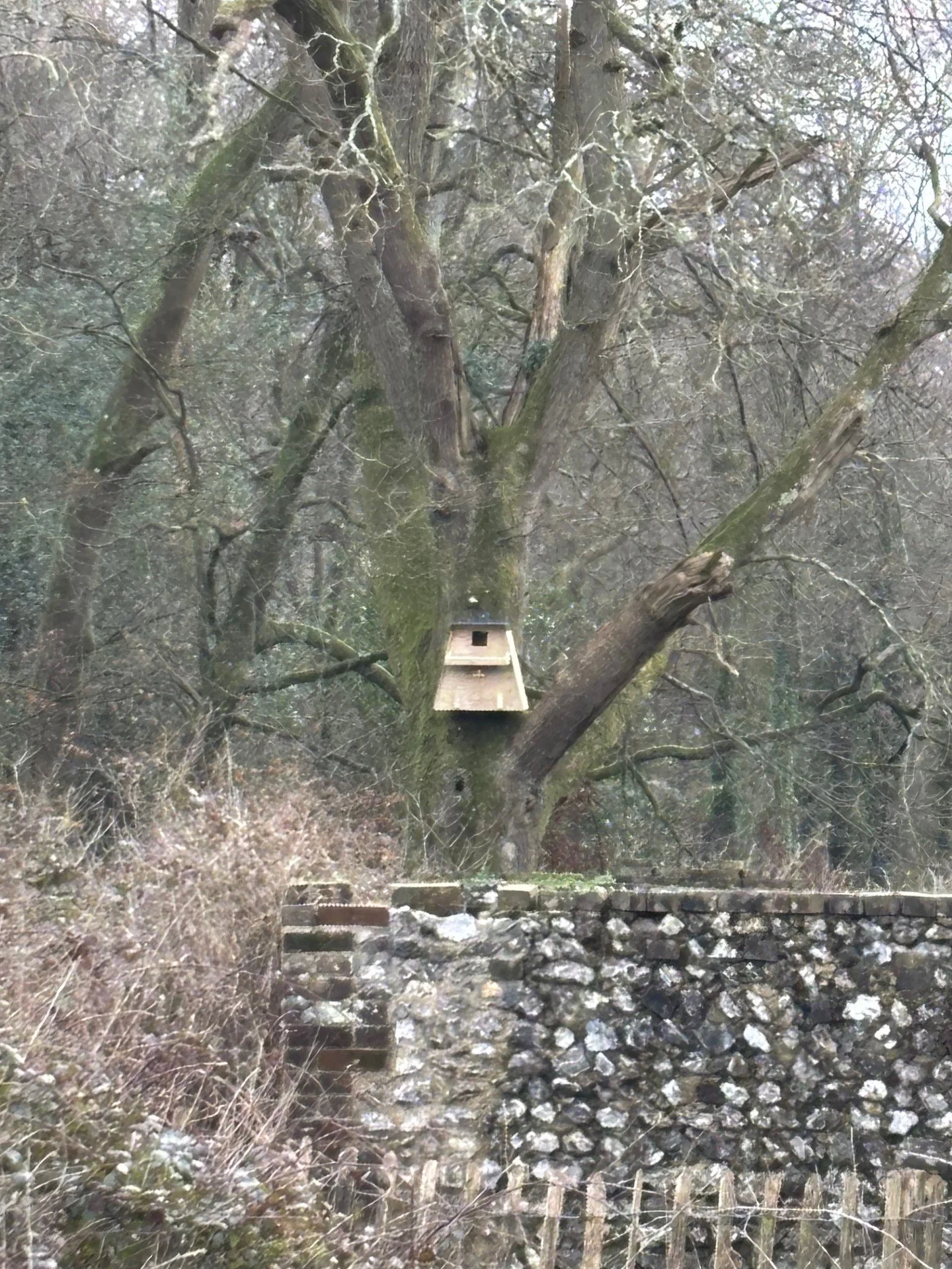 The ladder was set and the box is a tricky on as it has no inspection hatch and you have to reach through the front of the box and over a baffle. I put my phone inside took a photograph and realised there was more than one owl!